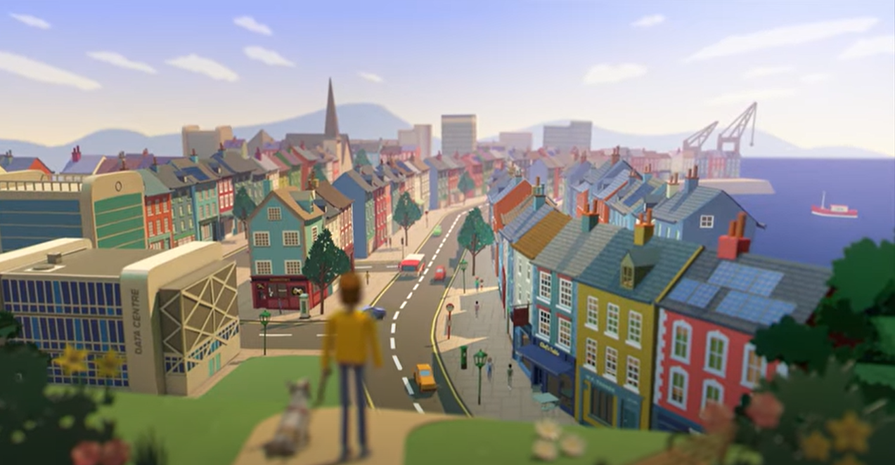 Despite the bright colours and happy music, the Gas Network Ireland advert is simply promoting greenwashing. Note the presence of the data centre in the foreground - an industry driving massive increases in gas consumption. Credit: Gas Network Ireland