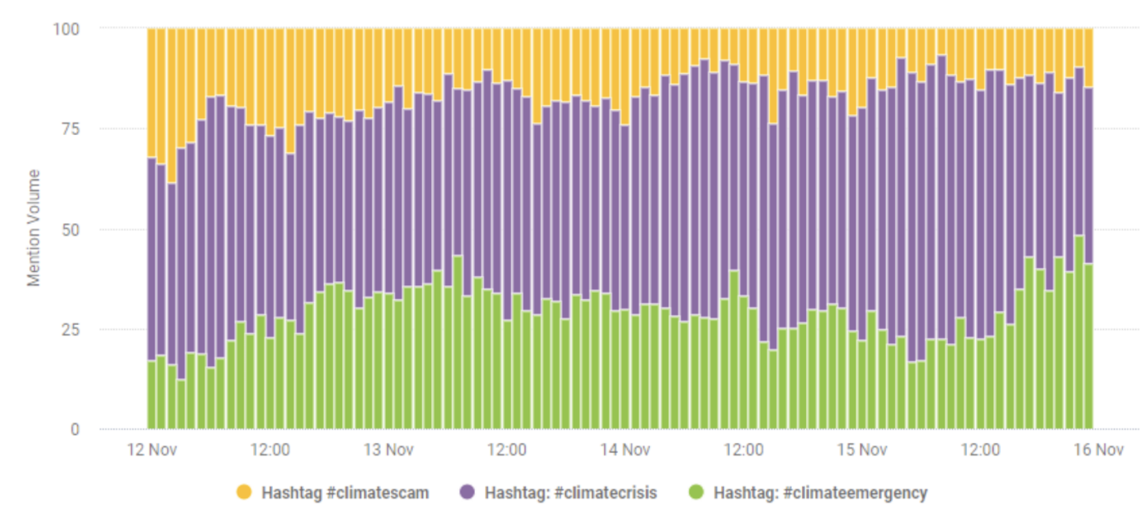 In fact, a report by the Climate Action Against Disinformation Coalition (CAAD) stated that usage of #ClimateScam rarely dropped below 1,000 retweets per day between July 2022 and November 2022.