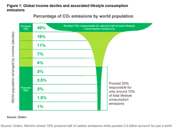 Remember that the poorest 50% of people on Earth - accounting for some 3.5 billion people - account for just 10% of total CO2 emissions. Credit: Oxfam