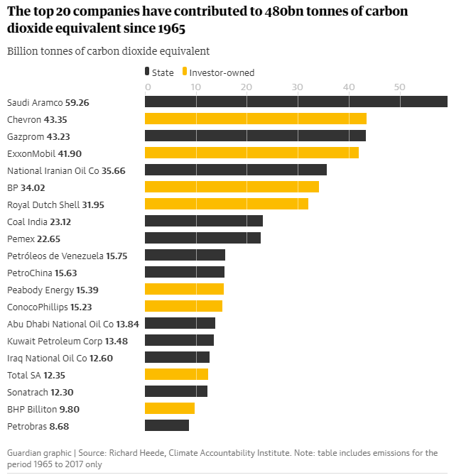 Shell has consistently been one of the biggest man-made CO2 emitters in the entirety of human history, and has known the role it plays in worsening the Climate Crisis for decades. Credit: The Guardian